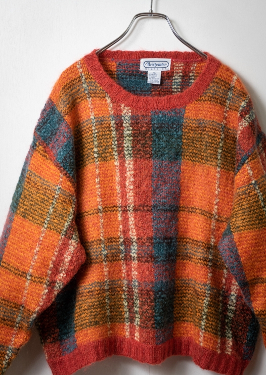 80's Warm Color Check Pattern Mohair Blend Sweater