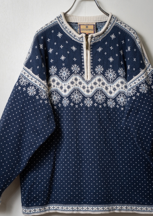 90’s Norway Smoky Blue × White Nordic Pattern Sweater