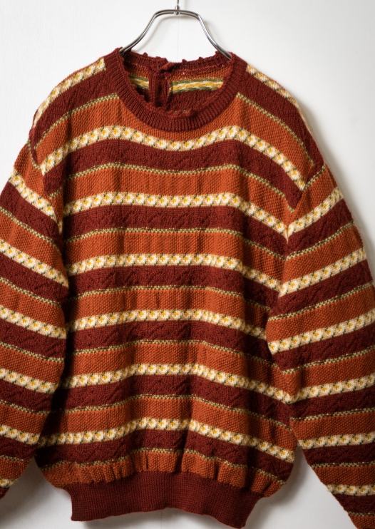 80’s Flower Motif Terracotta & Brown Border Sweater