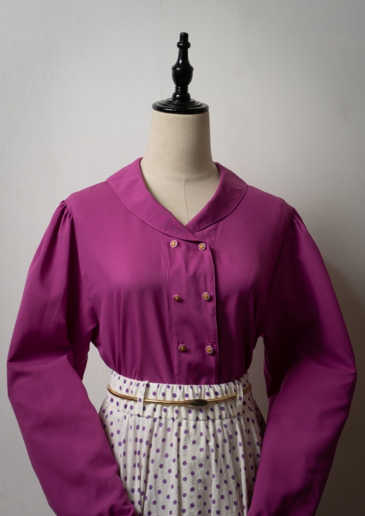 80's Botanical Cutwork Design Lavender Pink Blouse