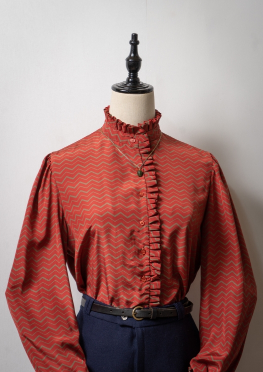 80's France Tuck Design Mad Glossy Stand Neck Blouse