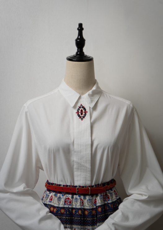 90’s Vine Motif Embroidery Point Beads Design Ivory Blouse