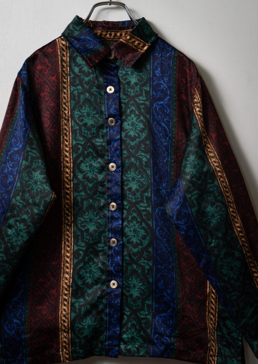 80's Multi Color Damask × Stripe pattern Blouse