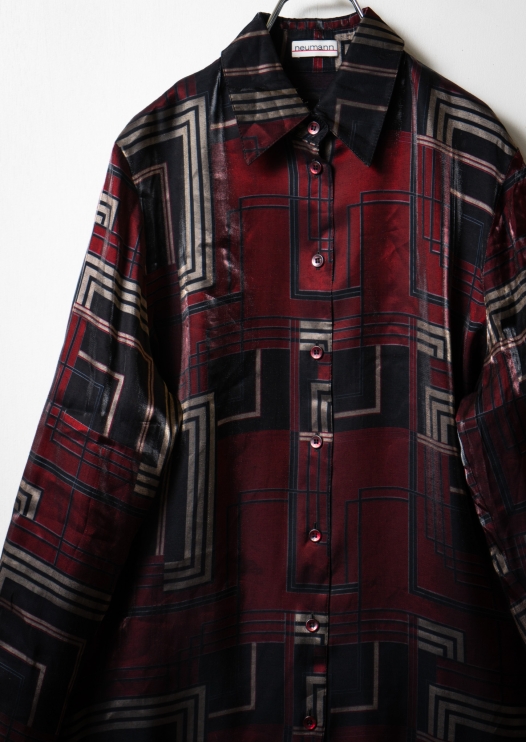 80’s W-Germany Unique Glossy Pattern Bow-tie Blouse
