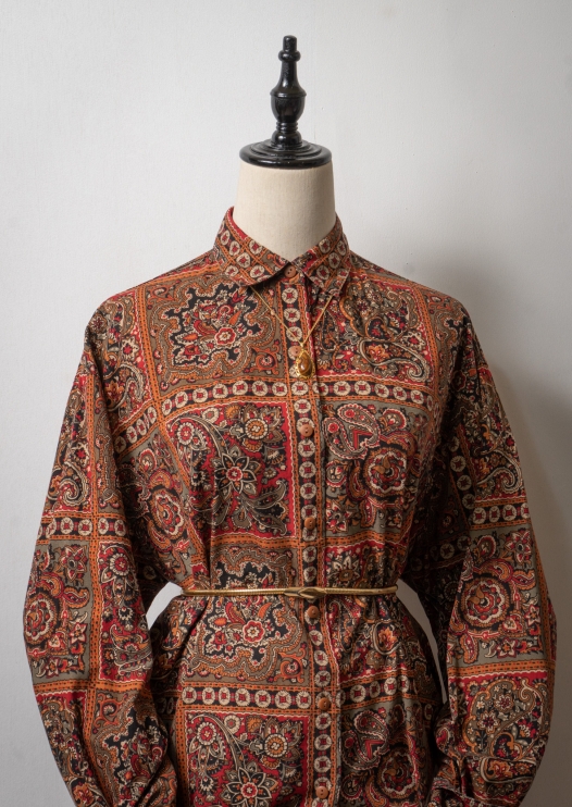 80's Paisley Motif Pattern Blouse