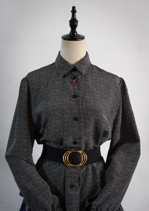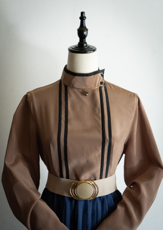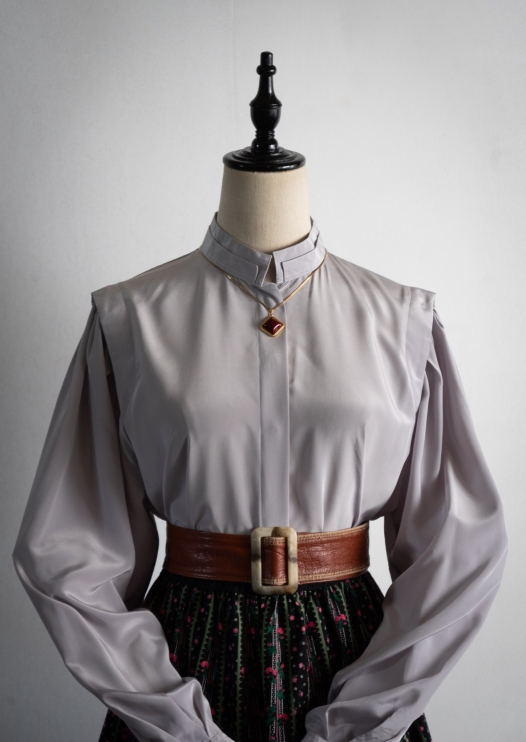 80~90's Euro Double Stand Collar Light Gray Blouse