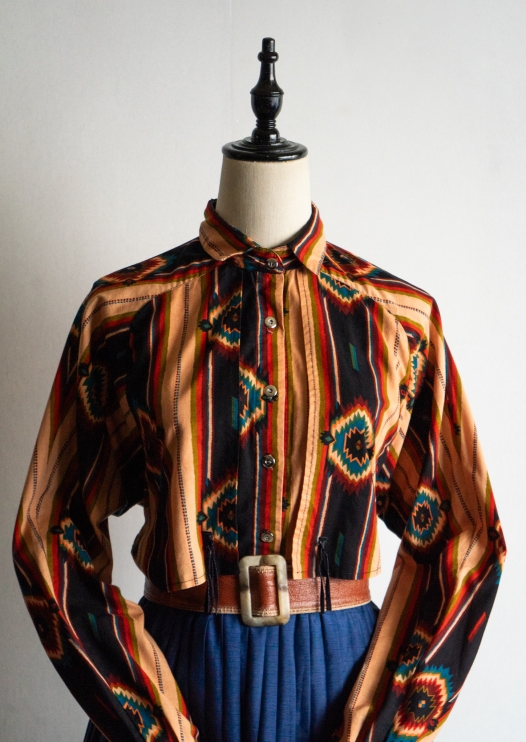 90's Stained glass Like Art Pattern Autumn Color Blouse