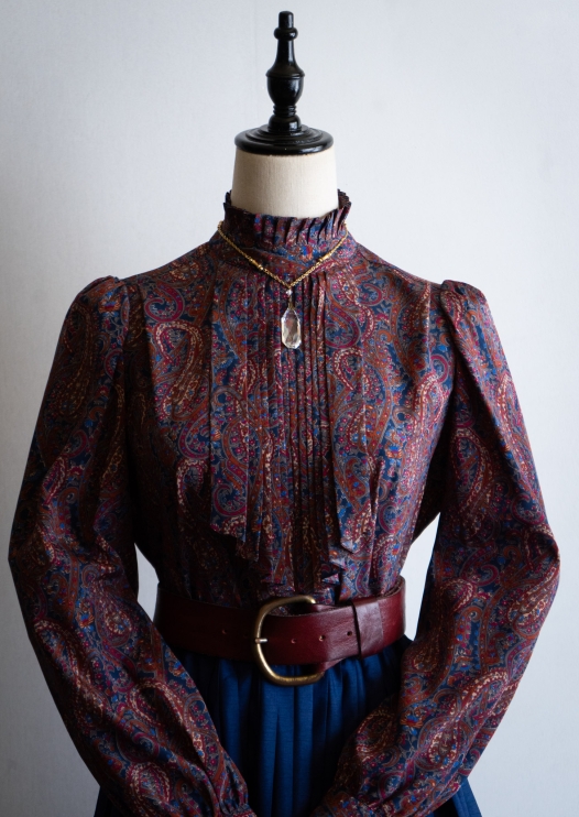 80's Pleats Jabot Collar Paisley Pattern Blouse