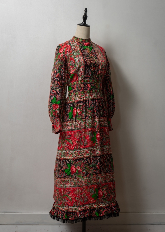60~70's Botanical Pattern Red Dress