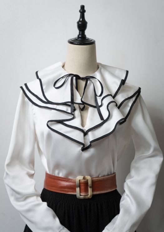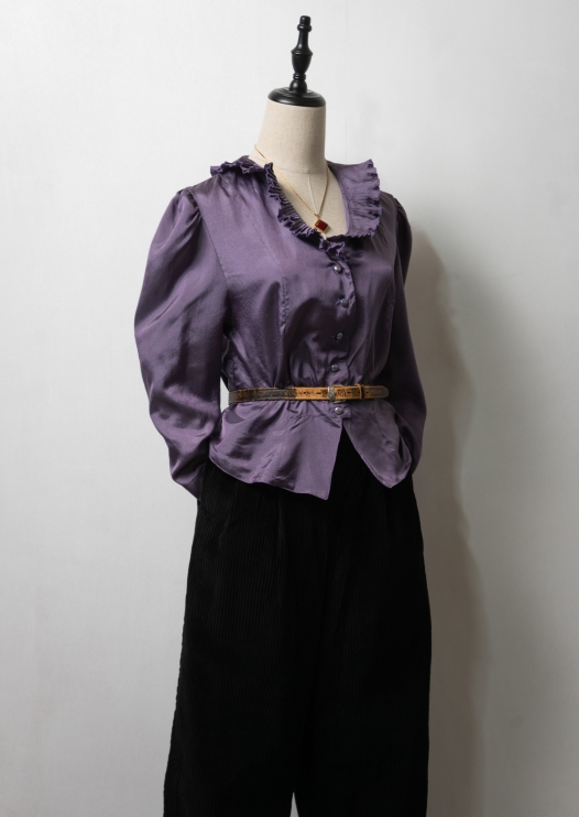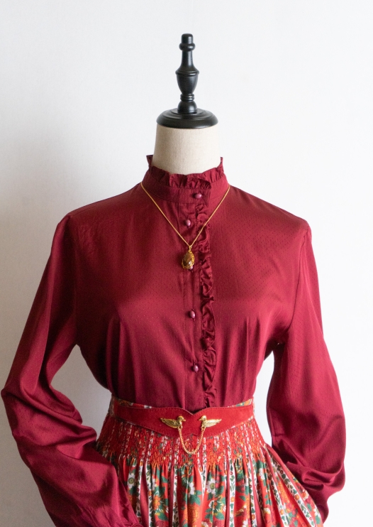 80~90's Frill Design Dot Like Embroidery Bordeaux Blouse