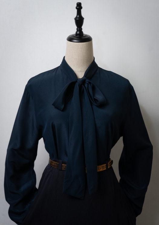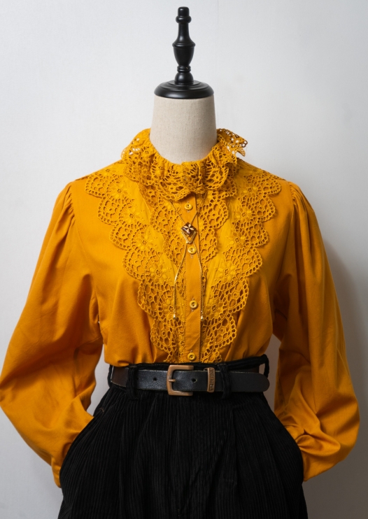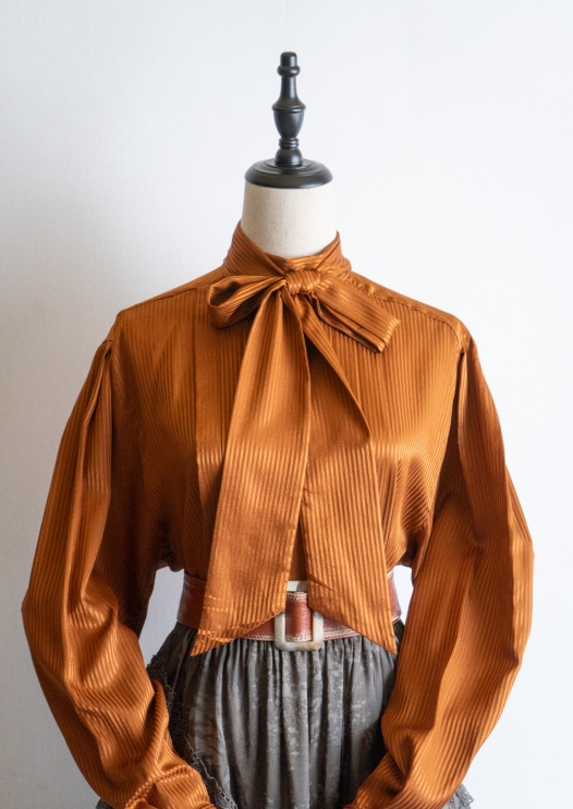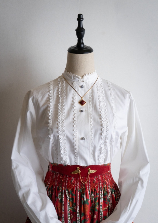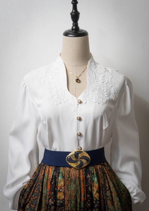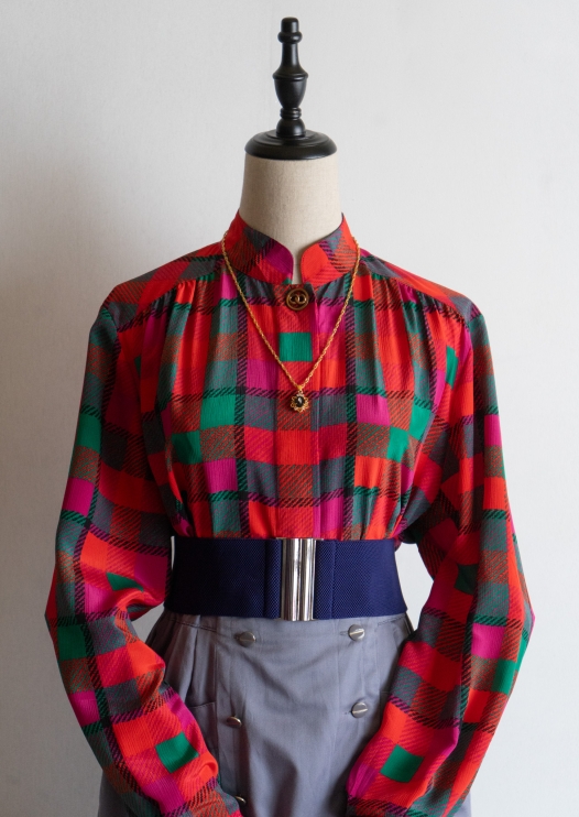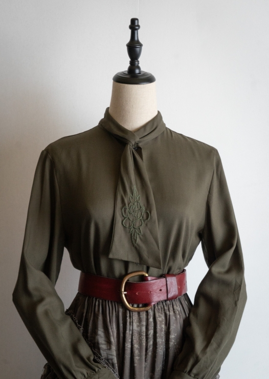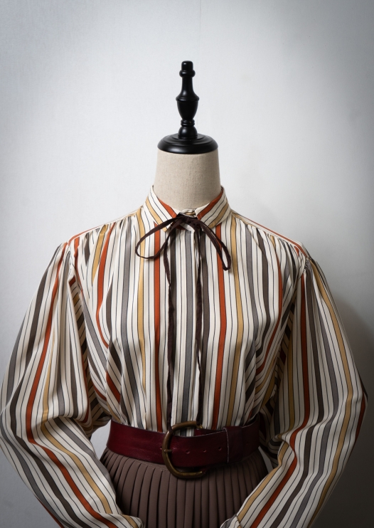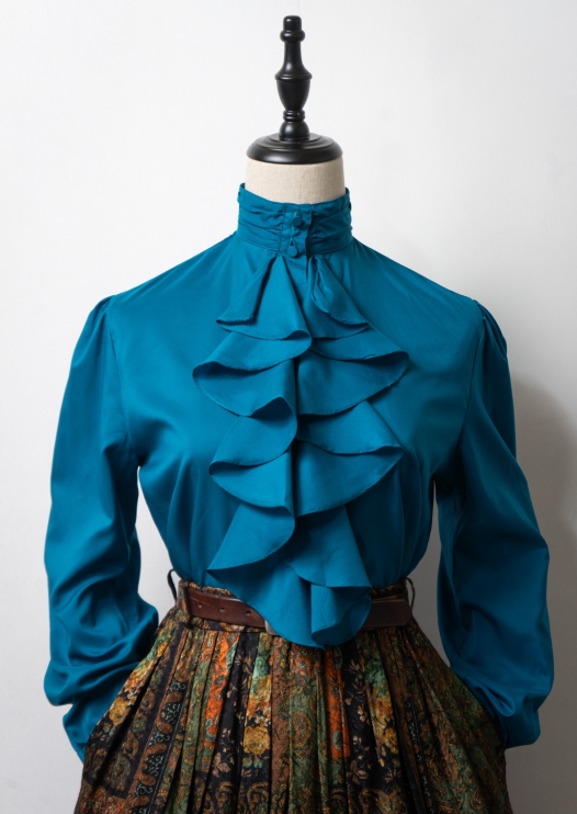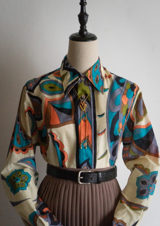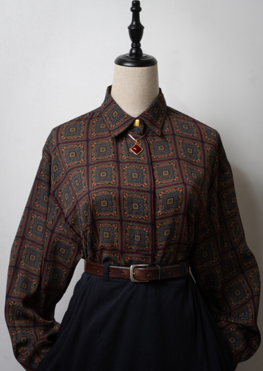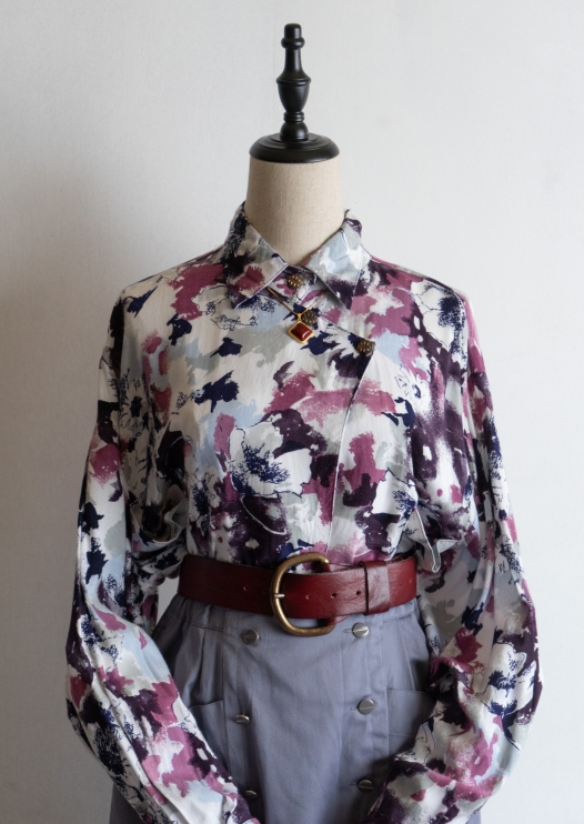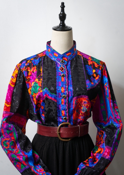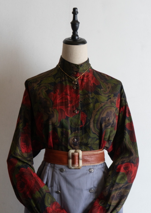70~80's USA Botanical Pattern Stand Collar Blouse
