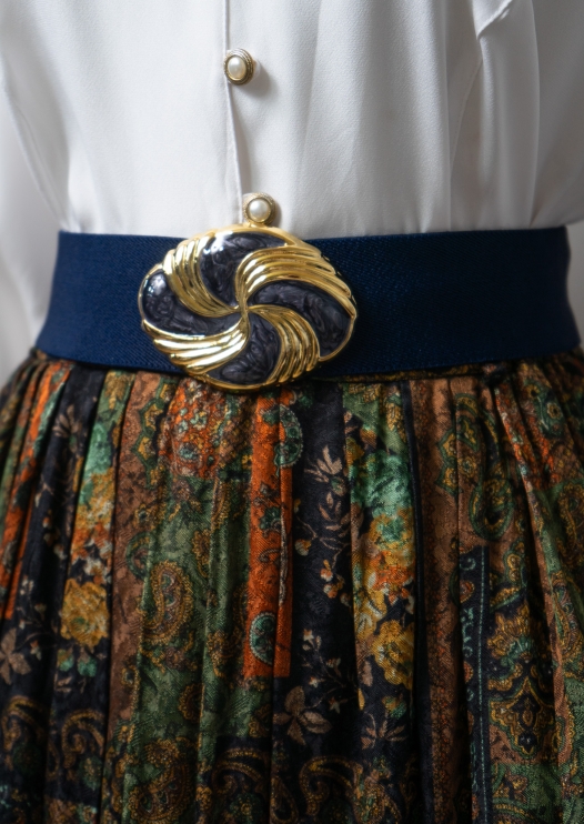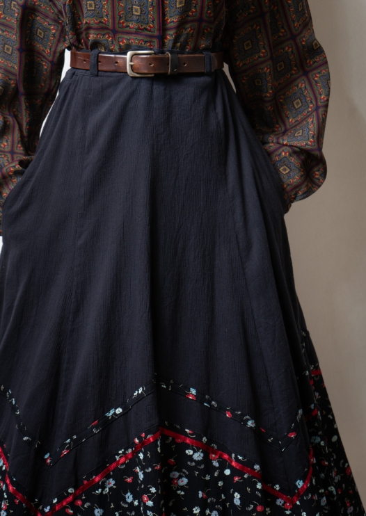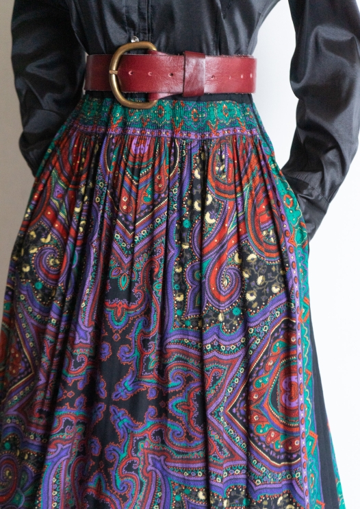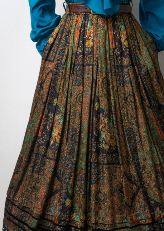 80's Green × Yellow Paisley Black Tyrol Skirt