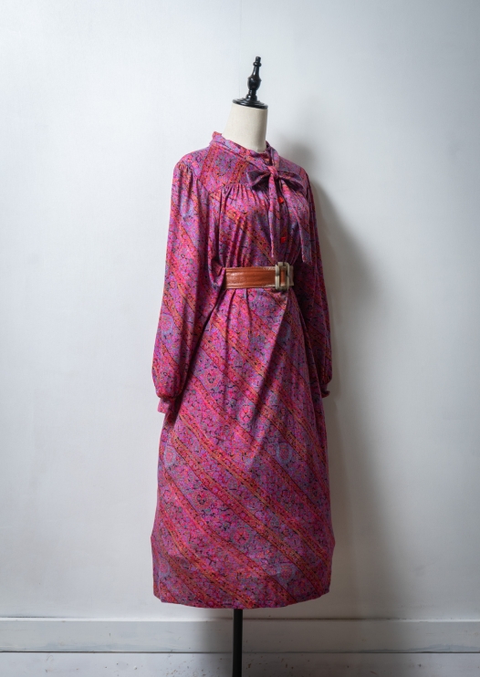 80's Euro Art Flower Pattern Bow-tie Dress