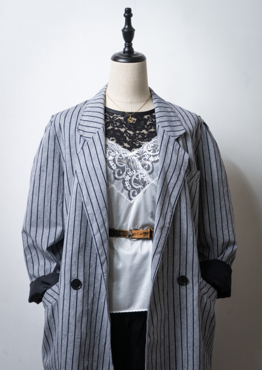 80's Euro Navy Stripe Pattern Light Gray Tailored Jacket