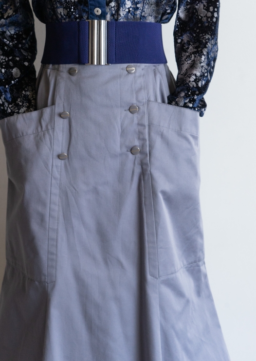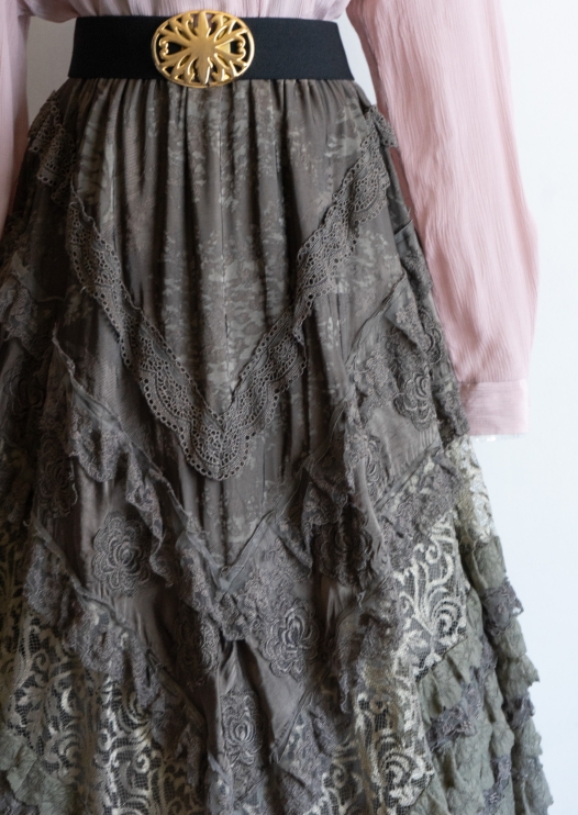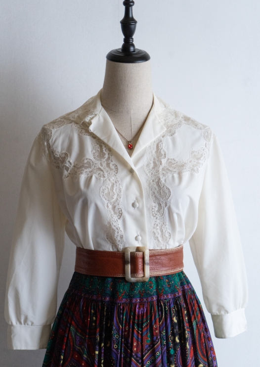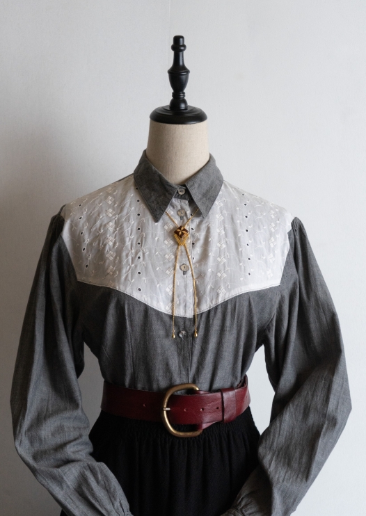 80's Front Eyelet Lace Design Gray Over dye Blouse