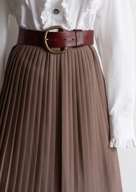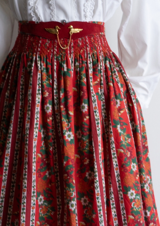 80~90's Waist Leather Belt Design Flower Pattern Red Tyrol Skirt