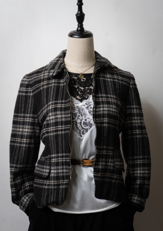 80's Houndstooth Pattern Olive Wool Tailored Jacket
