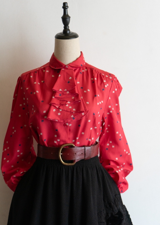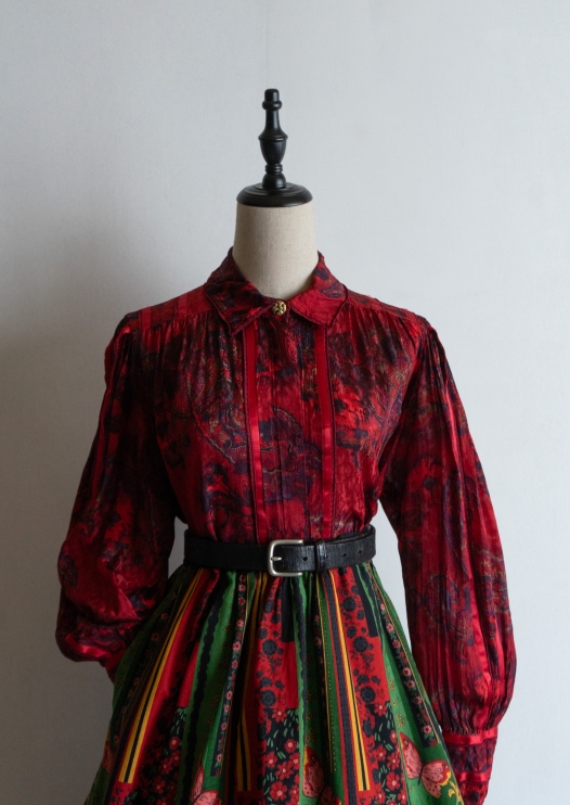 80's Waist Germany Paisley Art Pattern Dark Red Blouse