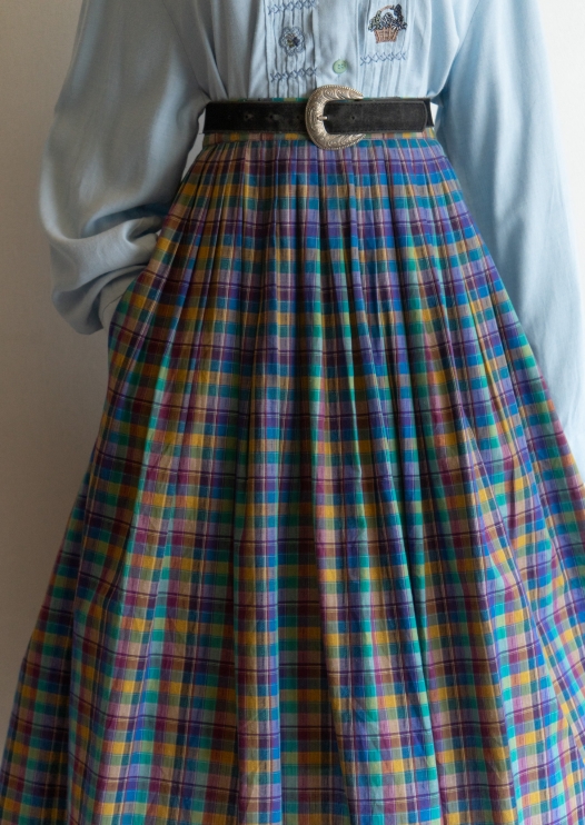 80’s Euro Waist Flower × Deer Embroidery Multi Stripe Pattern Skirt