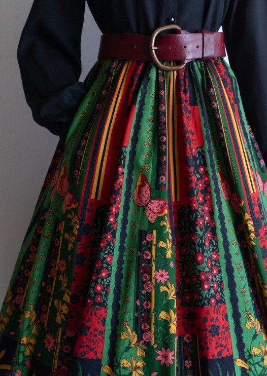 90's Patch work Like Multi Flower Pattern Tyrol Skirt