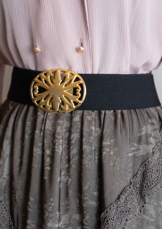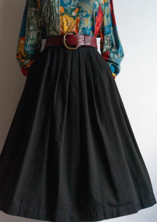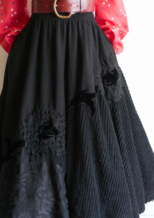 80’s Euro Botanical Jacquard Pattern Black Skirt