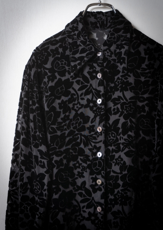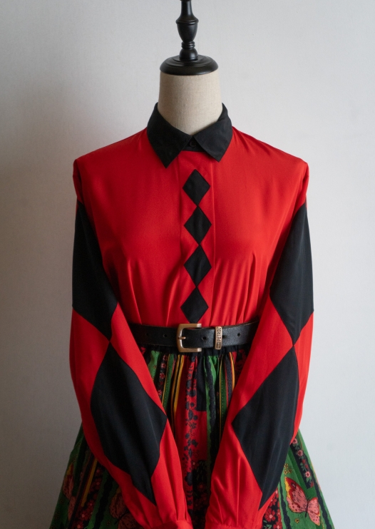90’s Black × White Bicolor Art Embroidery Design Blouse