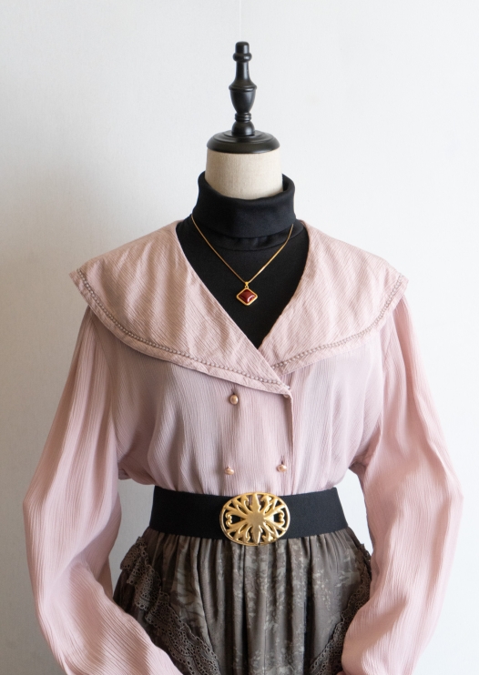 70’s USA Ivory Lace × Glossy Tape Design Blouse