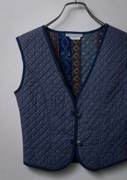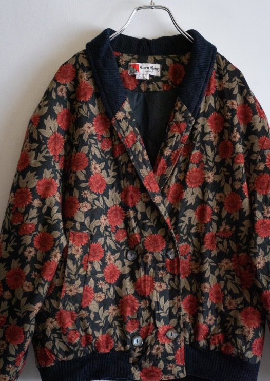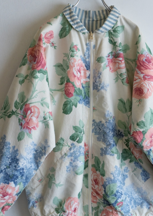 90's USA Flower Pattern × Light Blue Stripe Reversible jacket