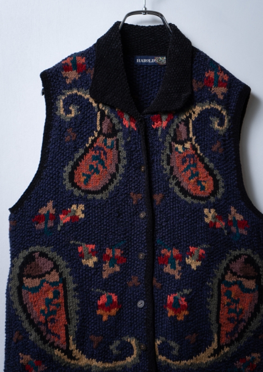 80's USA Pastel × Glitter Flower Pattern 3D Knit