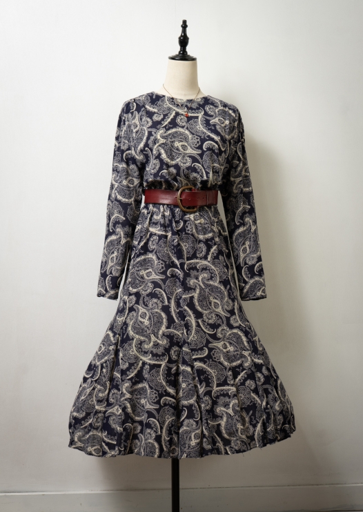 80's USA Paisley Pattern Panel Flared Dress