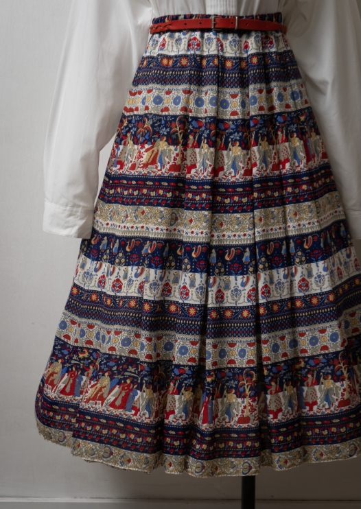 90's Flower × Bird Stripe Pattern Tyrol Skirt