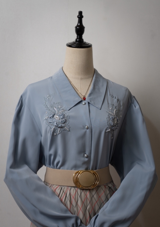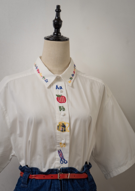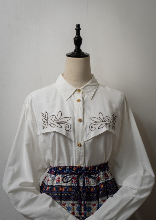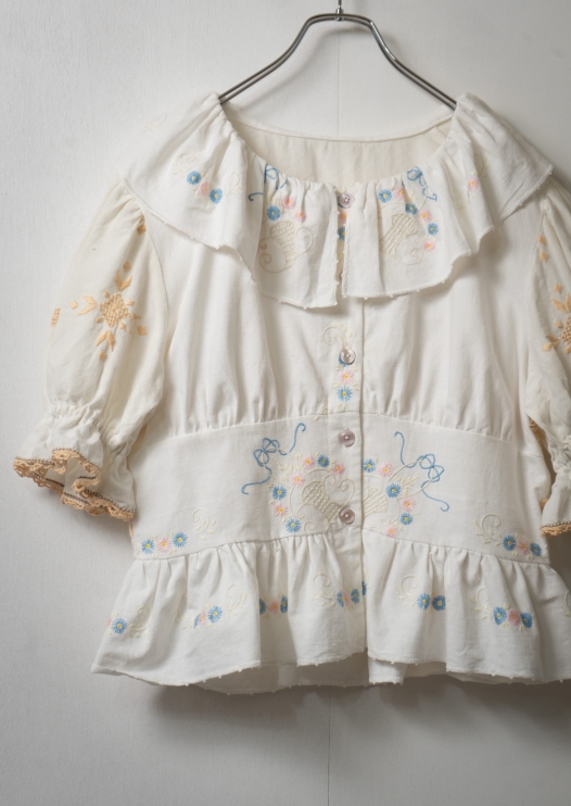 80~90's Yessica Frill × Flower Decoration Design White Blouse