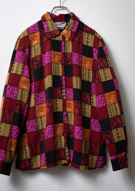 80~90's LESLIE FAY Block Check Pattern Blouse