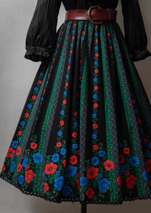 80~90's Dot × Flower Pattern Black Tyrol Skirt