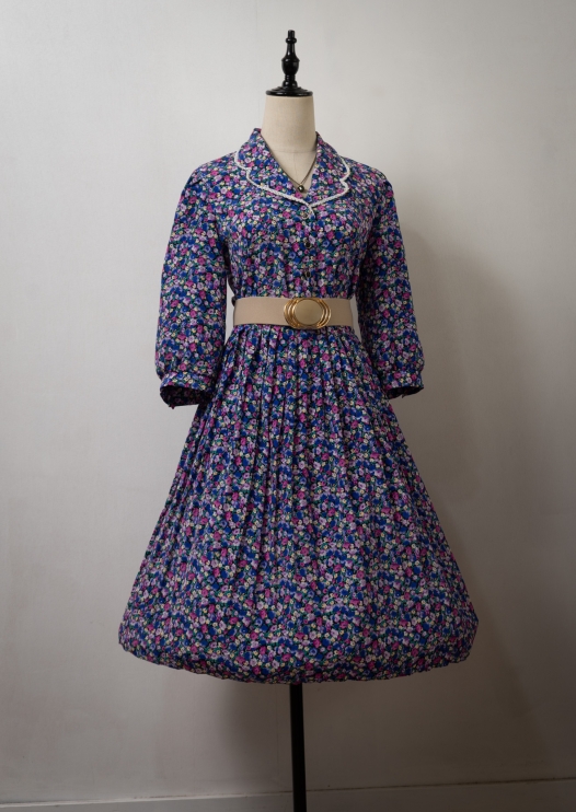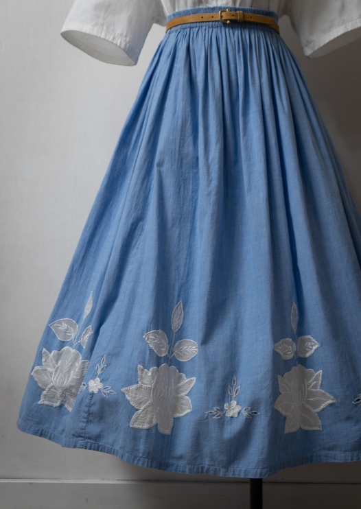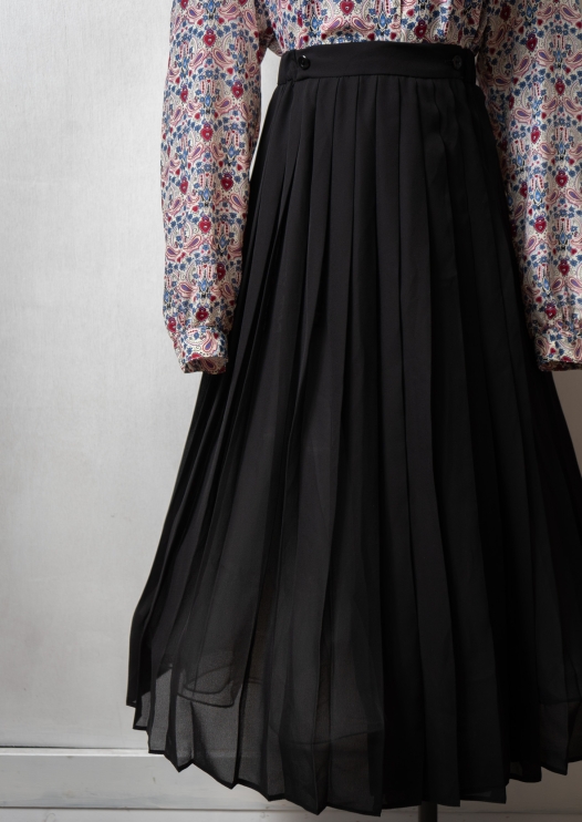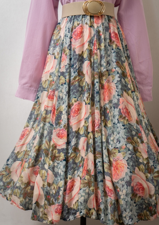 80~90's Art Flower Pattern Tuck Design Flared Skirt