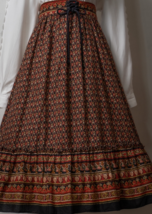 80's Ethnic Botanical Pattern Lace up Skirt