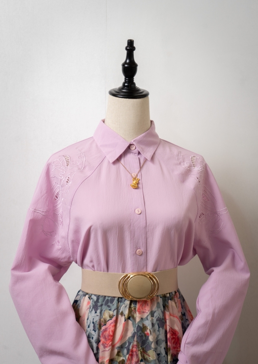 80's Botanical Cutwork Design Lavender Pink Blouse