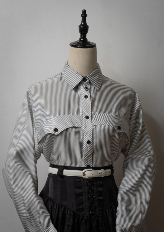 80's Stripe Pattern Silver Blouse