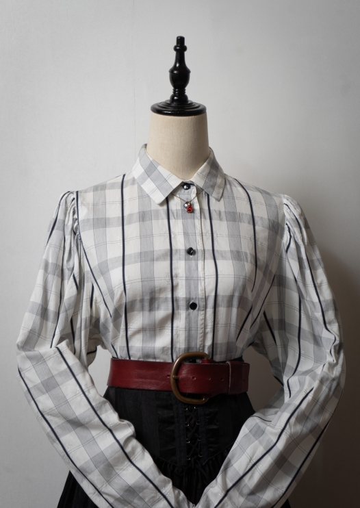 80~90's Check Pattern × Embroidery Blouse