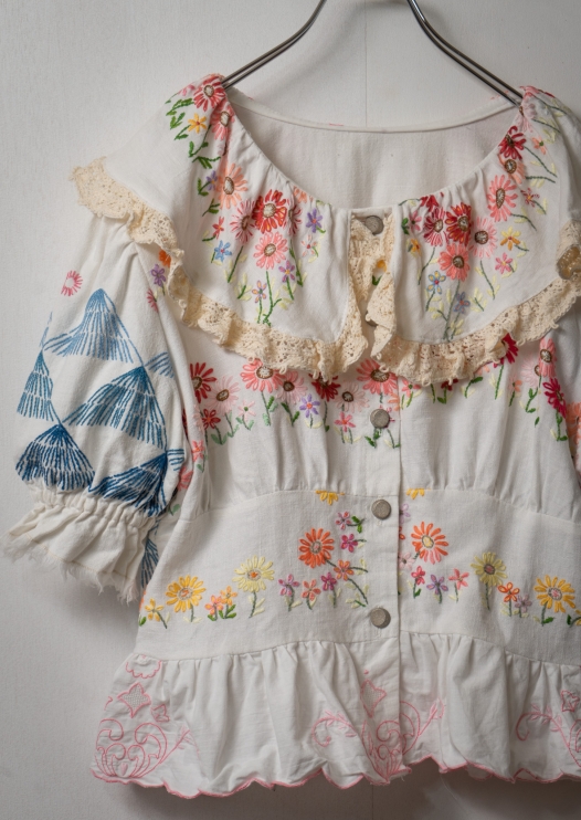 Upcycle Flower × Mountain Embroidery White Blouse