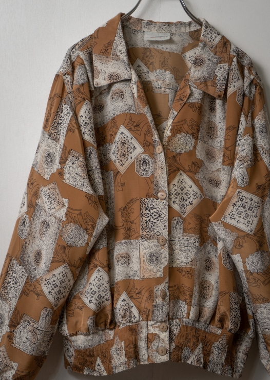 80's Art Pattern Camel Brown Blouse