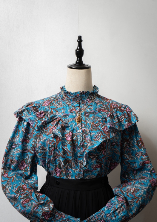 Frill × Point Shirring Design Paisley Pattern Blouse