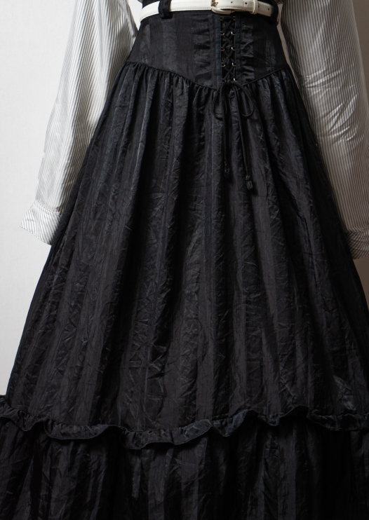 80's C&A Stripe Pattern Lace up Design Black Skirt