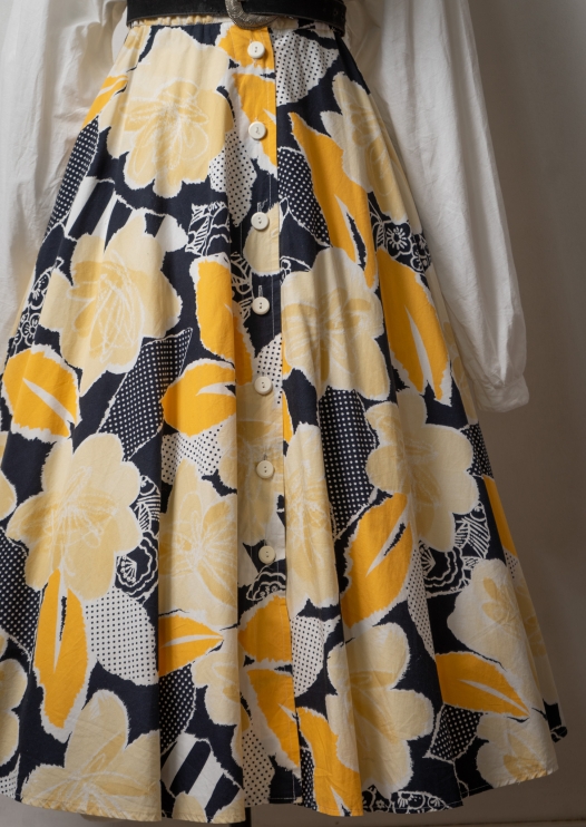 80~90's Flower × Dot Pattern Black Skirt