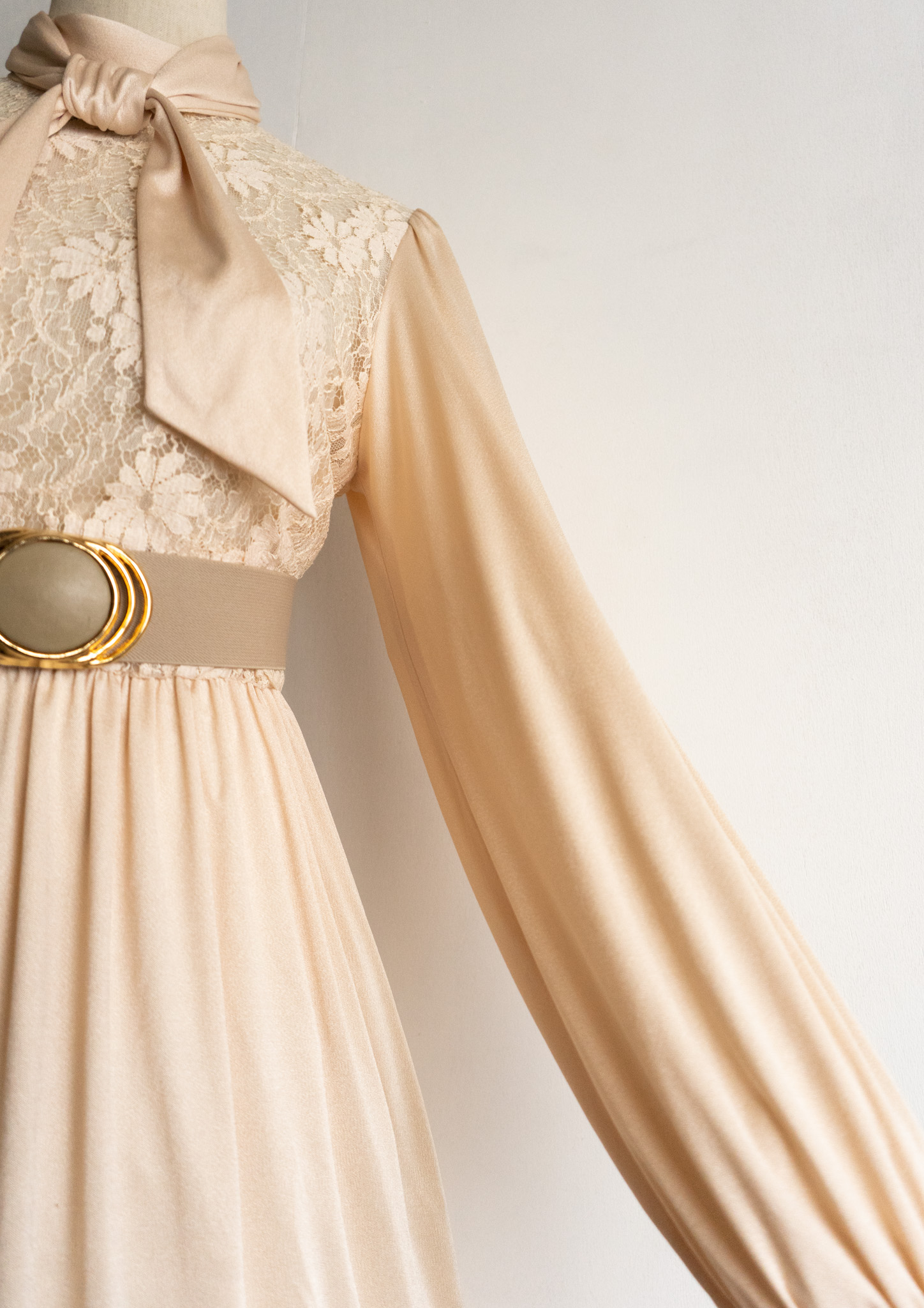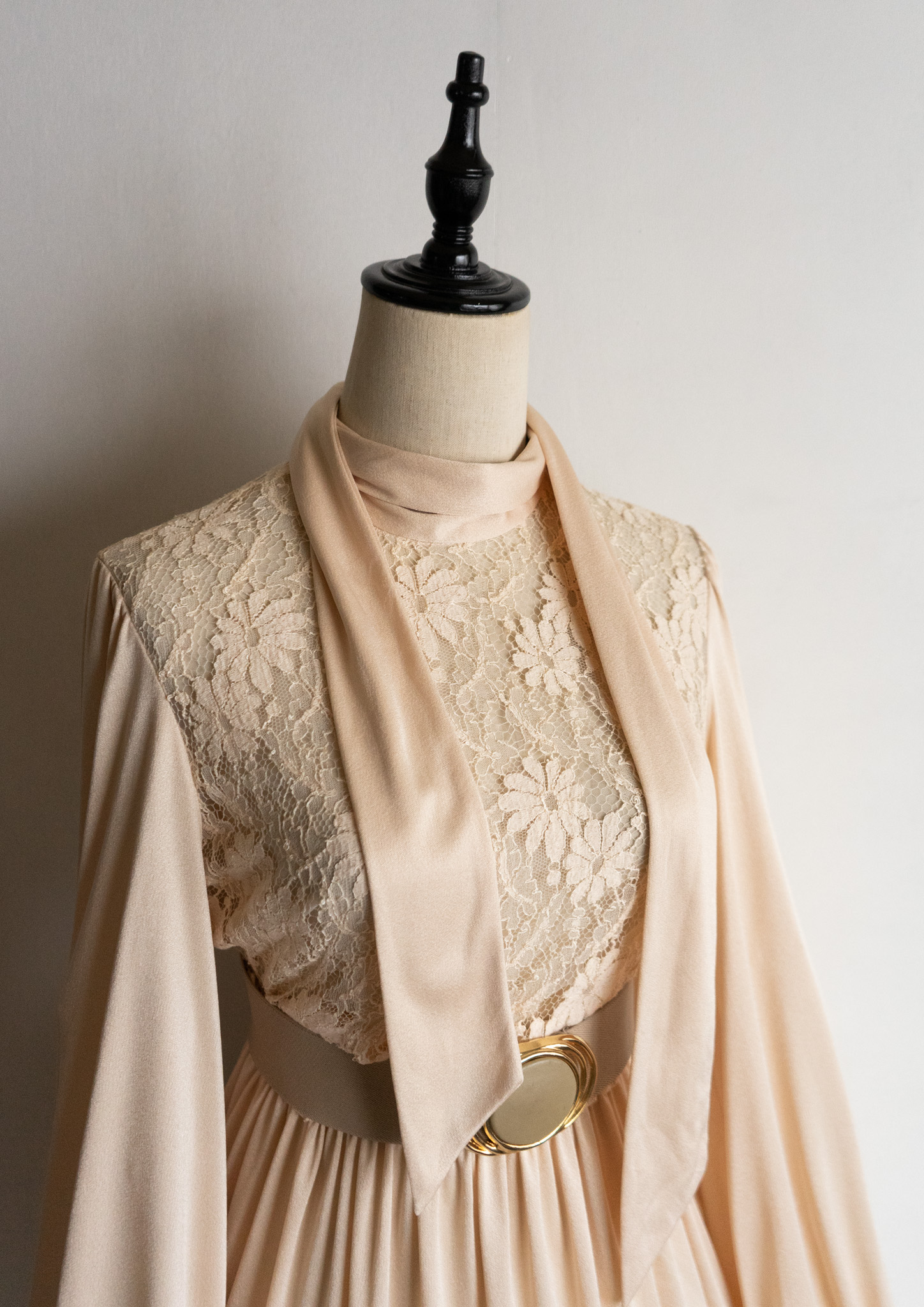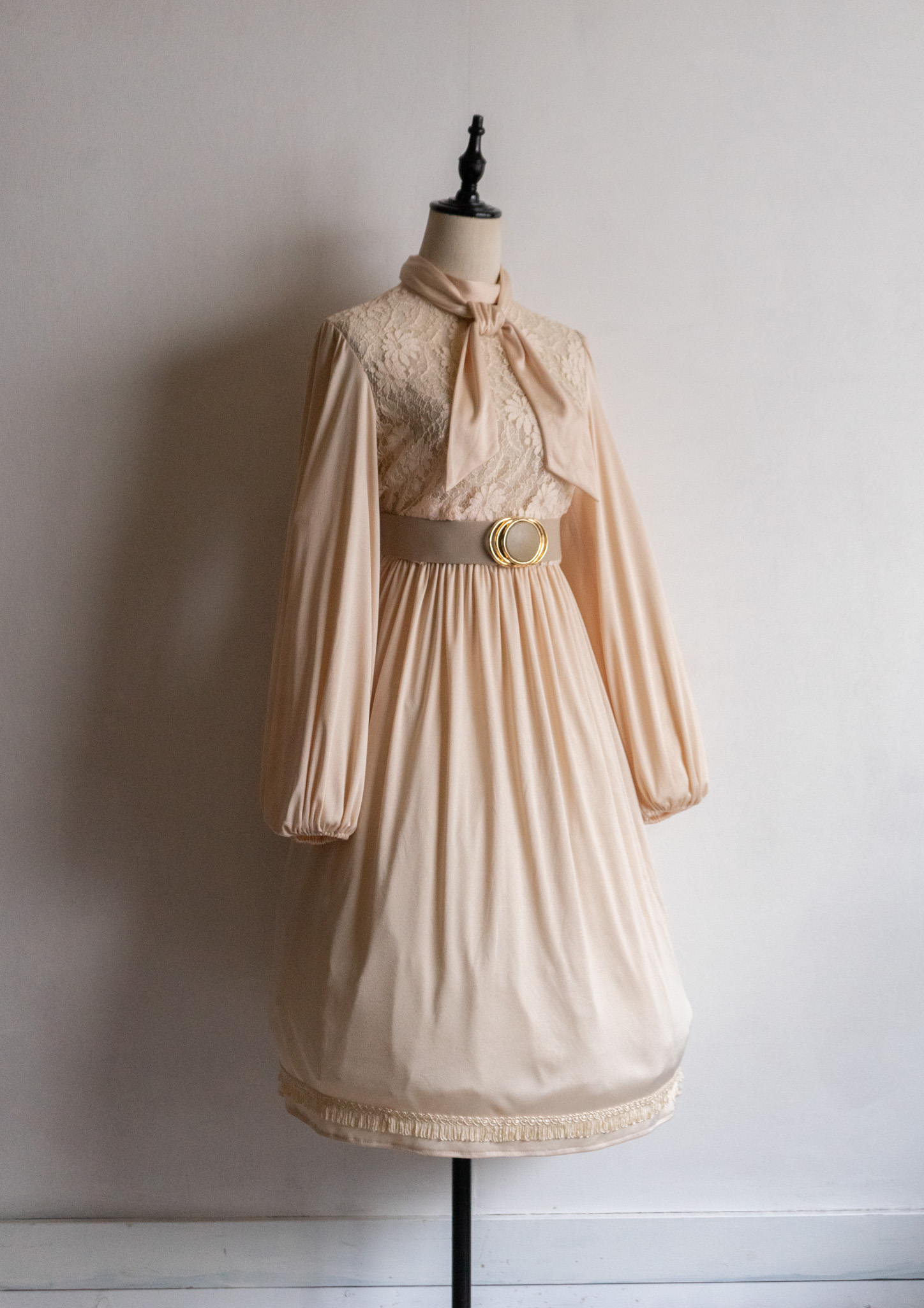 70's USA JC Penney Ribbon × Frill Design Red Dress