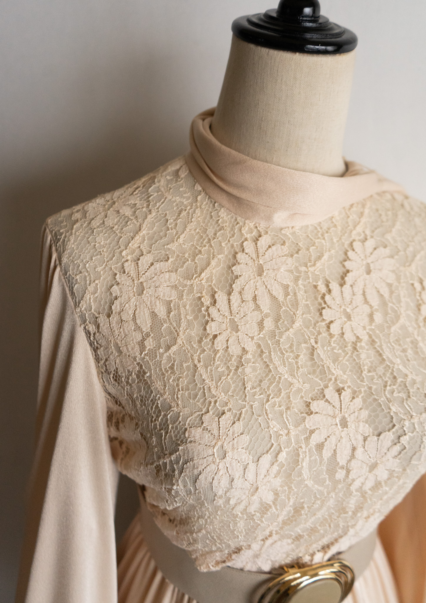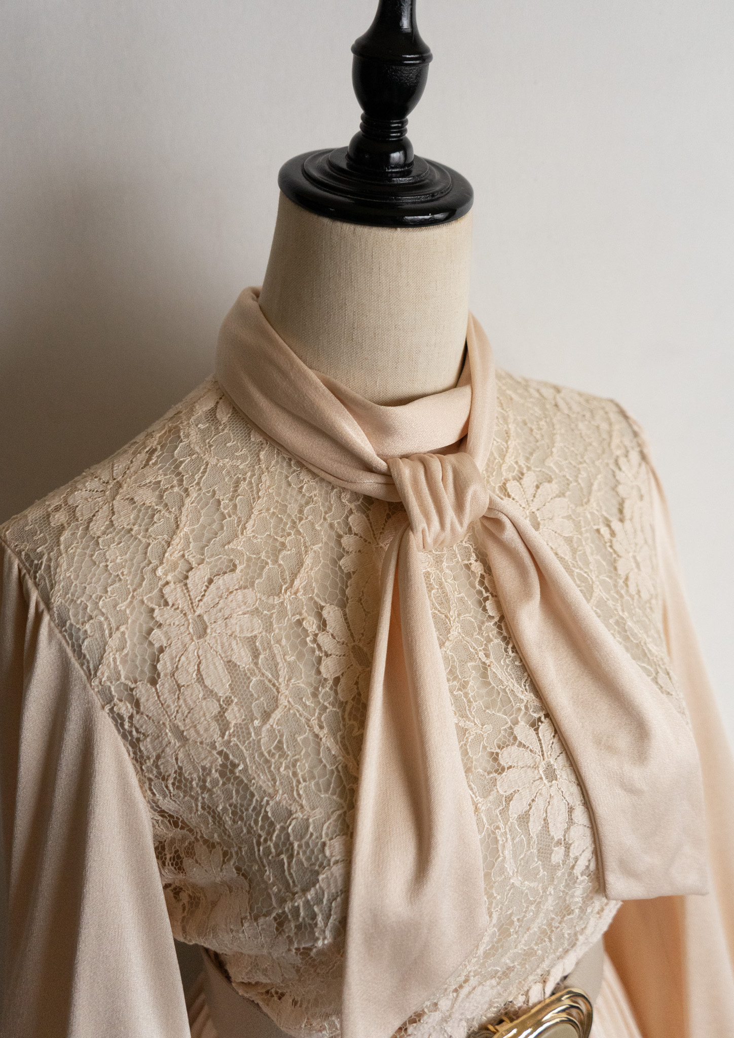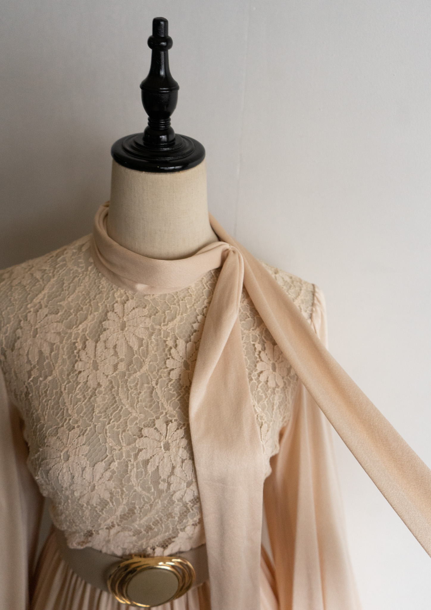 70's USA JC Penney Ribbon × Frill Design Red Dress