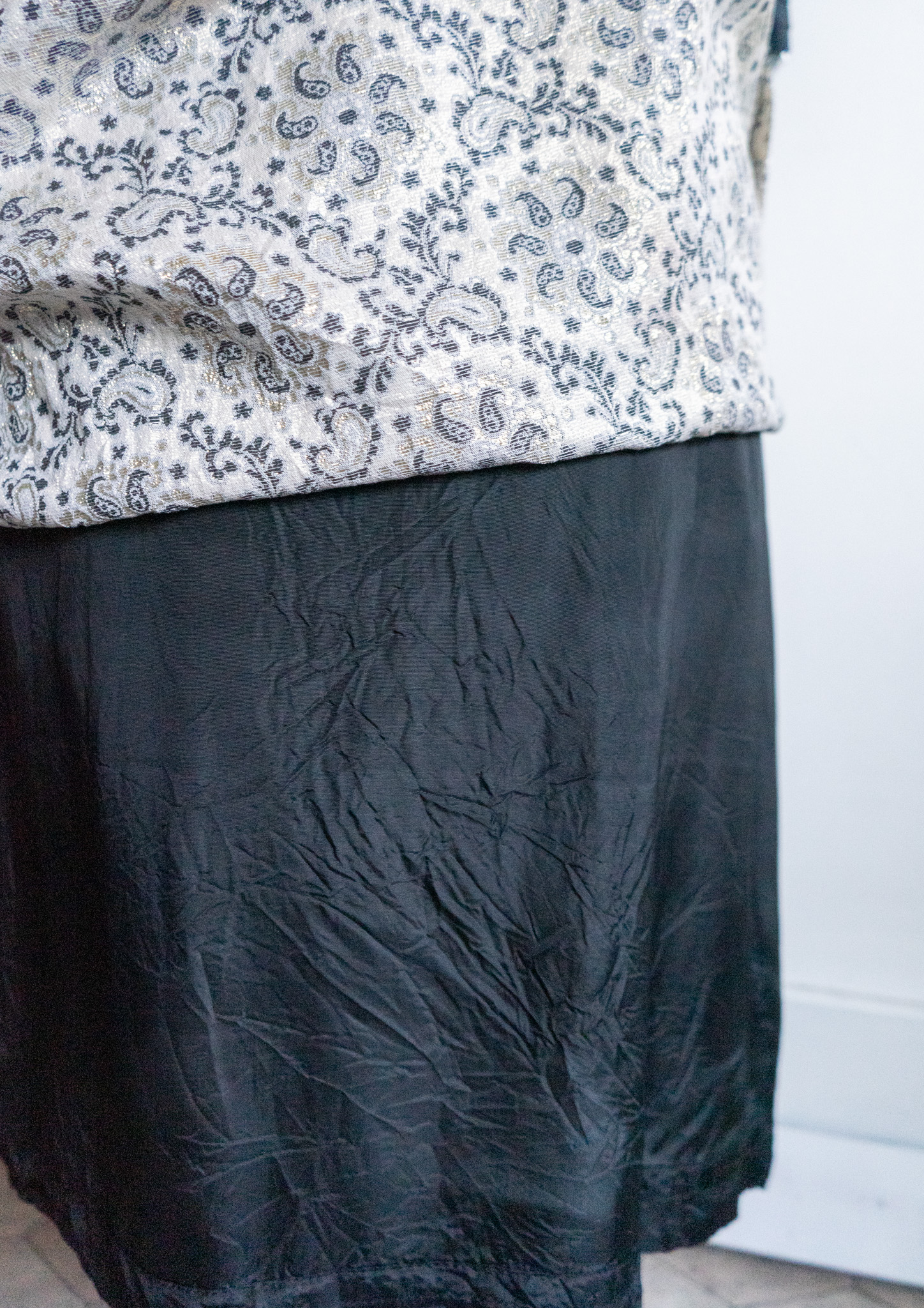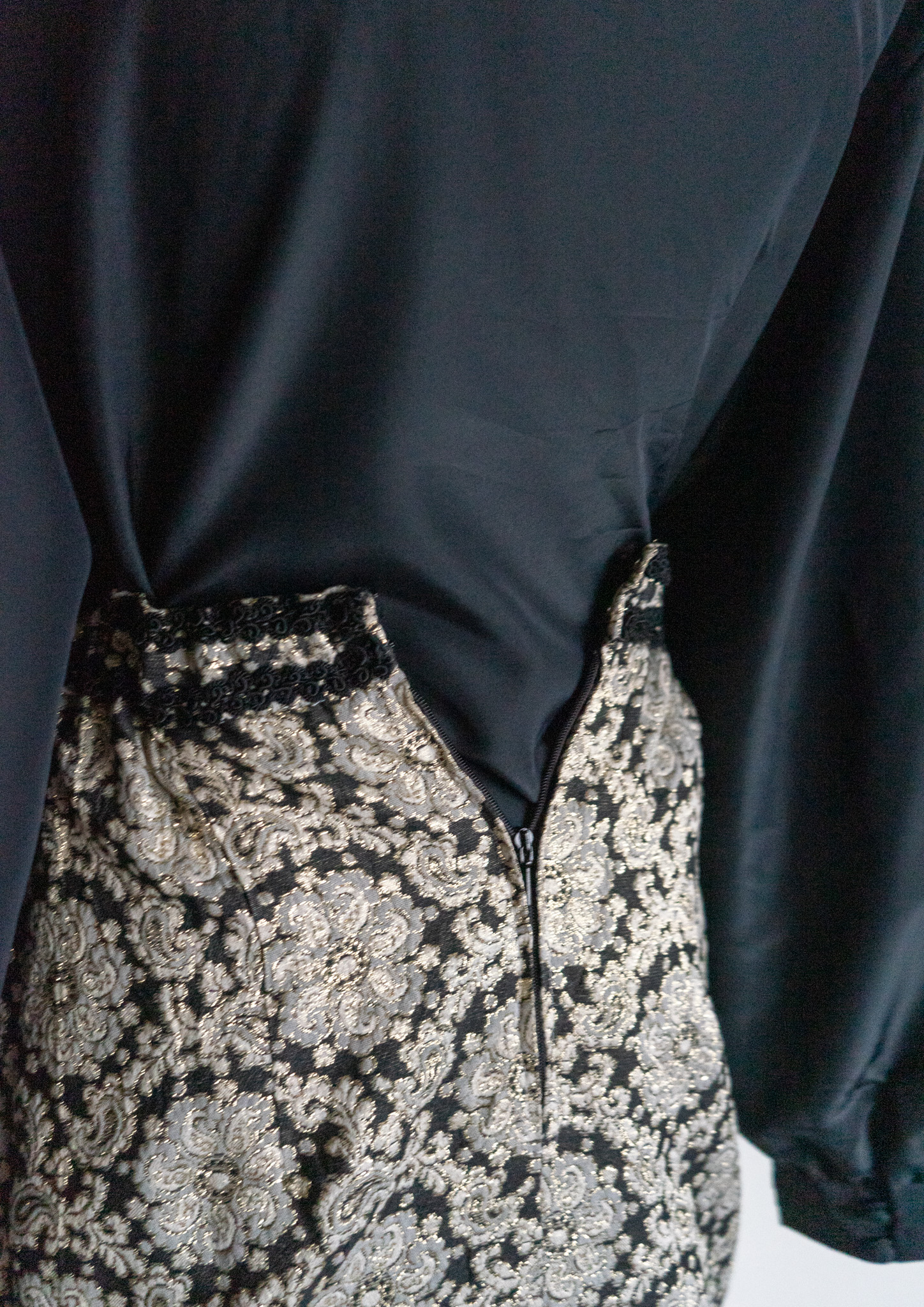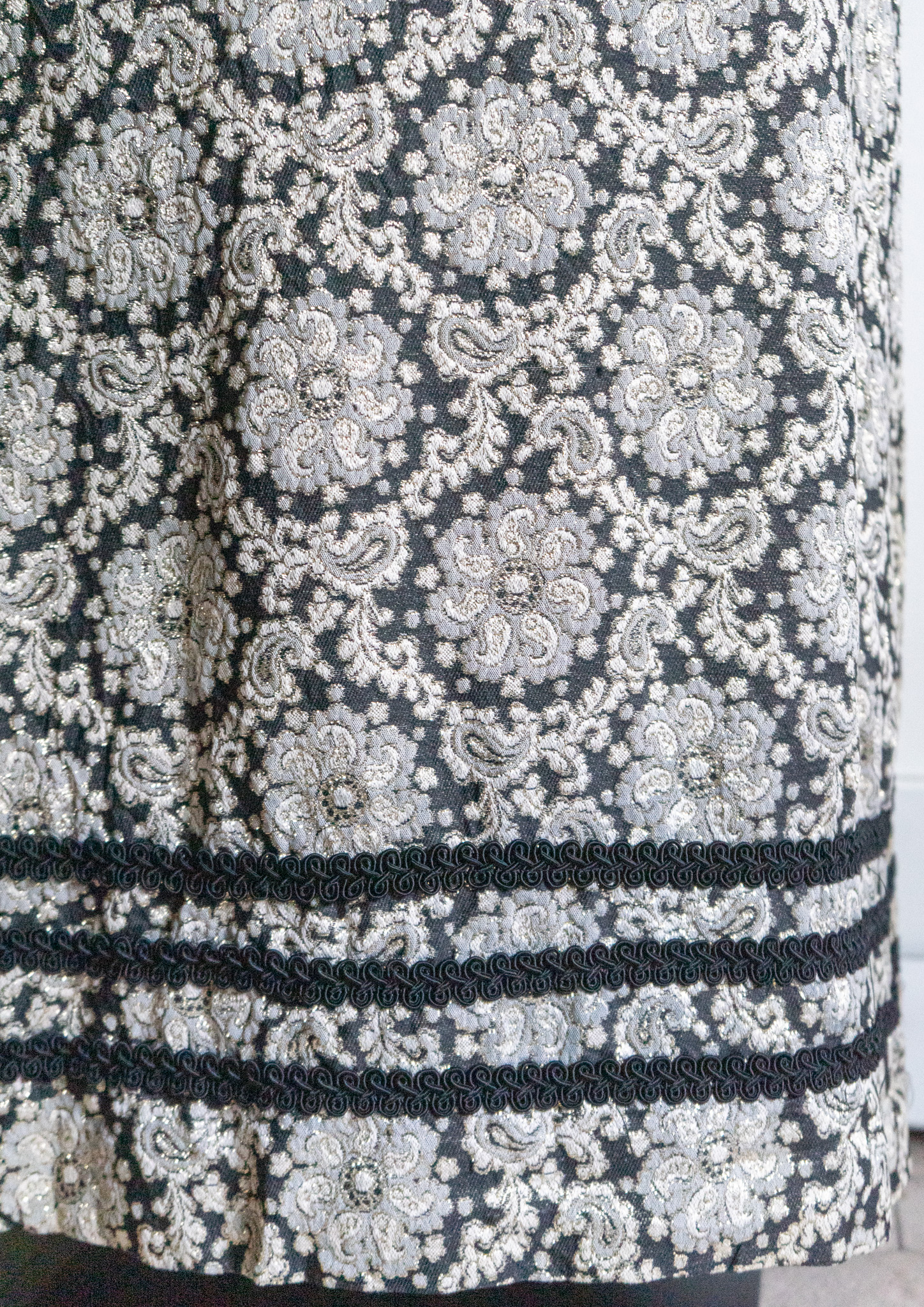 70's Gold × Black Flower Motif Paisley Pattern Jacquard Maxi Skirt