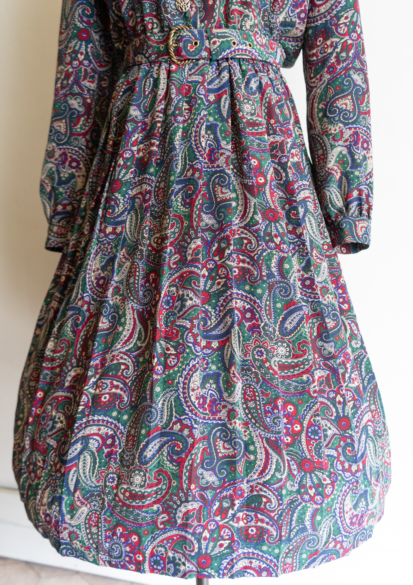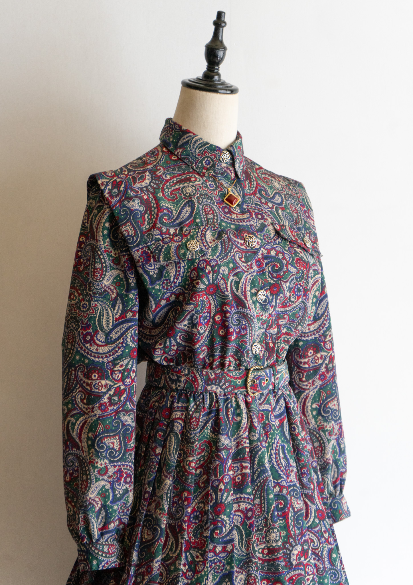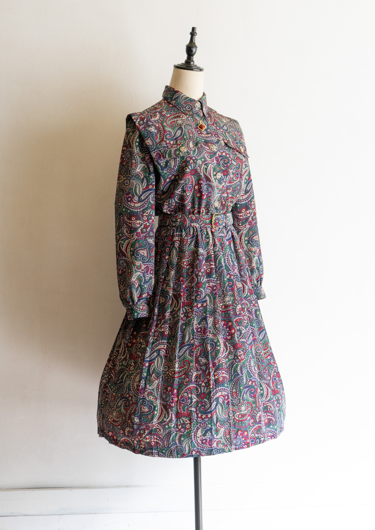 80's USA Houndstooth Pattern Velour Collar × Button Dress