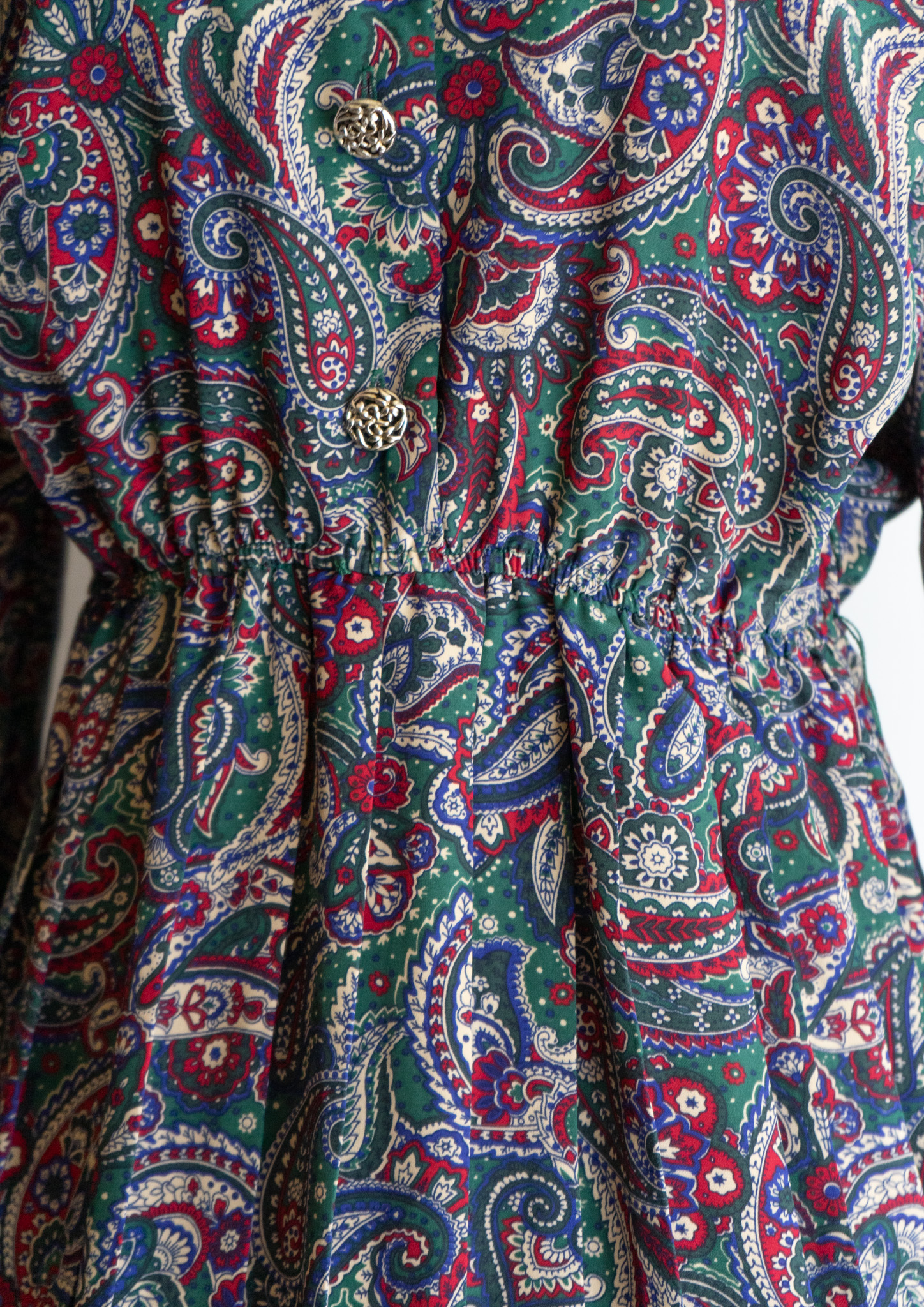 90's Donna Morgan Botanical Pattern Tuck Design Purple Dress
