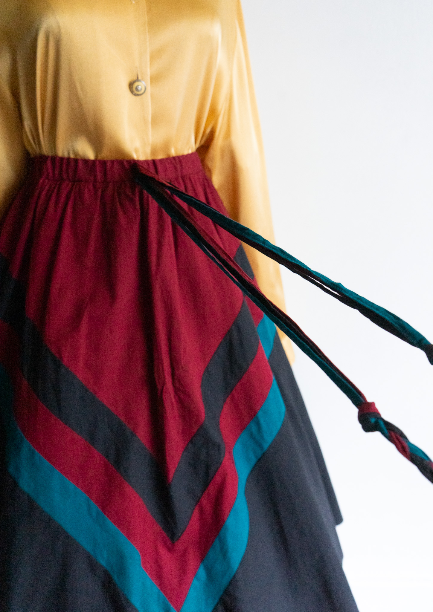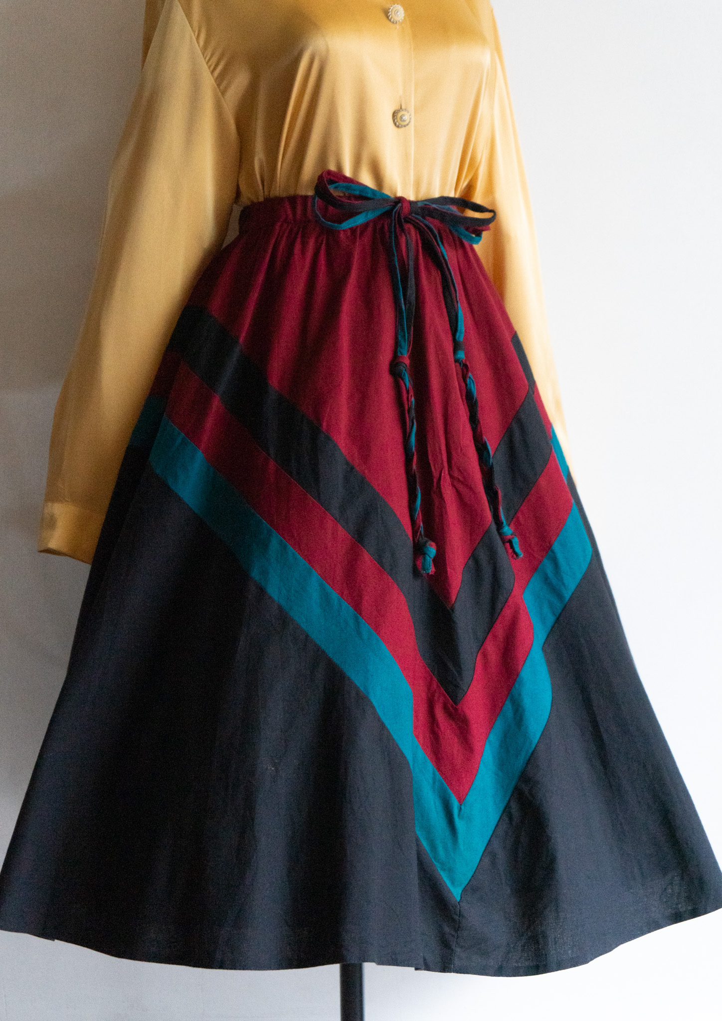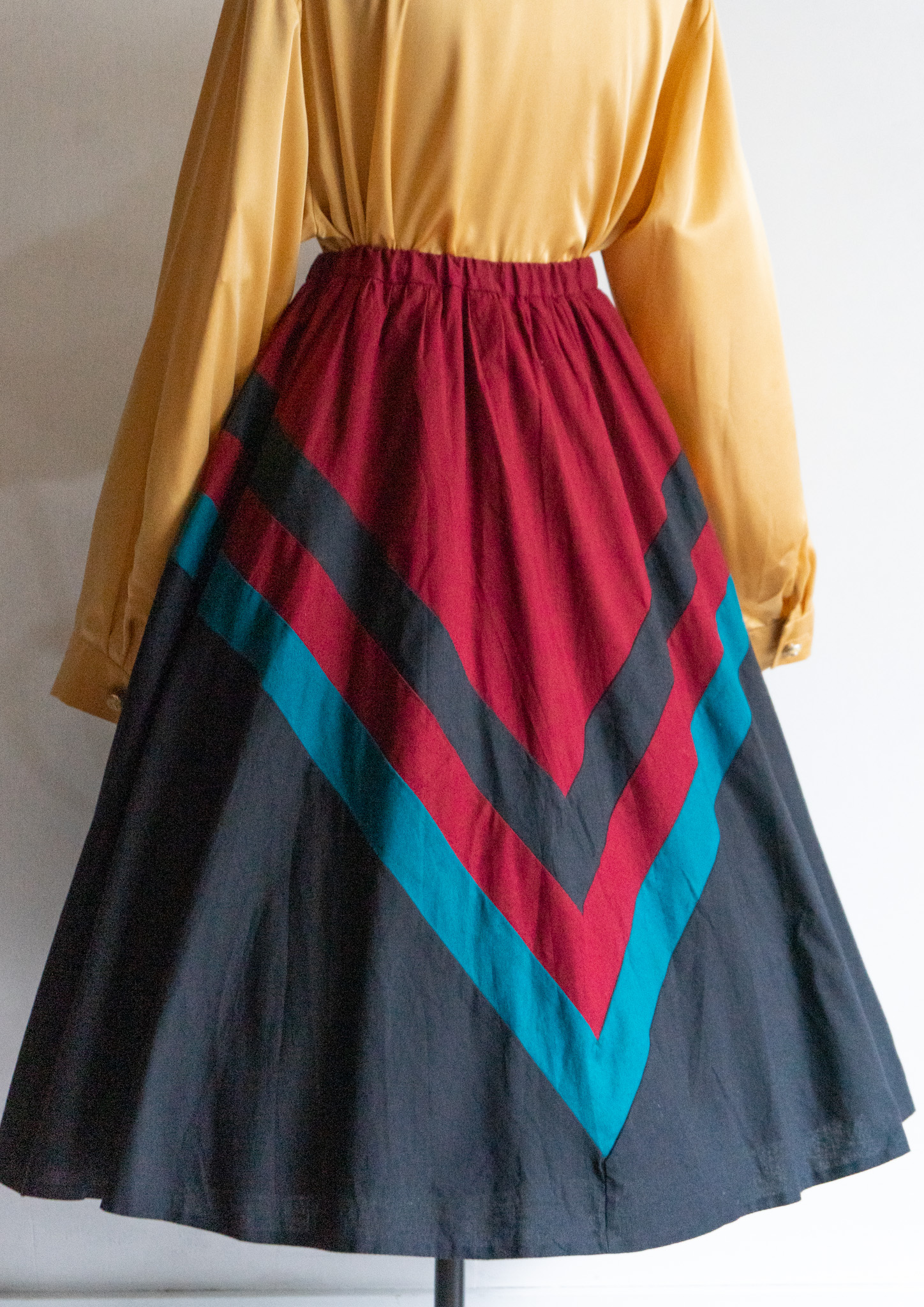 80's Bordeaux × Turquoise Art Pattern Skirt